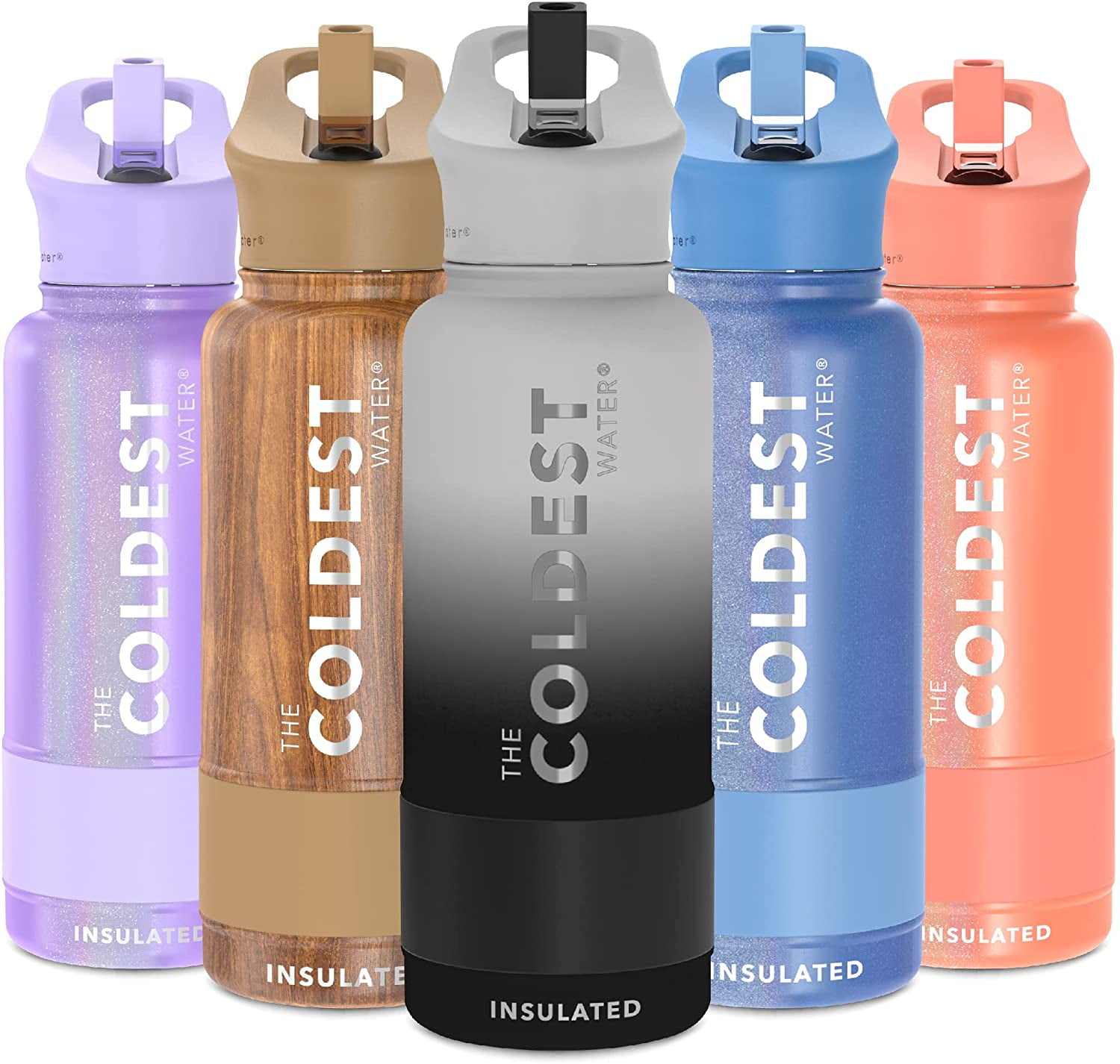 Coldest Sports Water Bottle 32 Oz Straw Lid Leak Proof Vacuum Insulated Stainless Steel Hot Cold Double Walled Thermo Mug Metal Canteen 32 Oz White Walmart Com